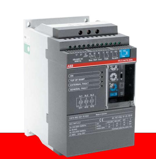 Khởi động và dừng mềm chỉnh từ 1-30s, thực hiện 30 lần khởi động/giờ. Tiếp điểm phụ 1NO; cấp bảo vệ IP20. Cấp điện áp 110 − 120 V AC or 220 − 240 V AC: PSS18/30; PSS30/52; PSS37/64; PSS44/76; PSS50/85; PSS60/105; PSS72/124; PSS85/147; PSS105/181; PSS142/245; PSS175/300; PSS250/430; PSS300/515