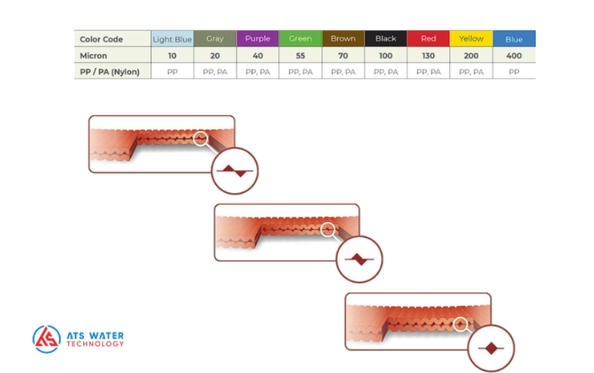 Các đĩa lọc được mã hóa màu để phân biệt cấp độ lọc, từ 400 micron đến 20 micron. Cụ thể: