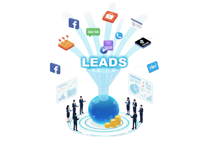 - Tự động gom lead đa kênh (Web, FB, Zalo...)