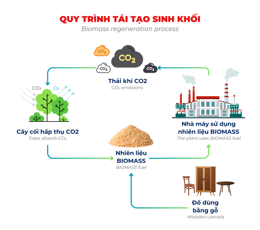 + Nhận thức được tầm quan trọng của việc giảm phát thải CO2, DIVI Group khuyến khích sử dụng nhiên liệu sinh khối bởi khả năng tái tạo và đặc tính thân thiện với môi trường. Khi được khai thác và sử dụng, nhiên liệu sinh khối chỉ phát thải lượng CO2 tương đương với lượng CO2 mà chúng đã hấp thụ trong quá trình trưởng thành, tạo nên một chu trình carbon trung hòa.