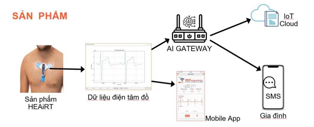 Bên cạnh thiết bị đeo, hệ sinh thái HEAiRT còn tích hợp nền tảng AIoT phục vụ quản lý và theo dõi khám chữa bệnh tim mạch thông minh. Thông qua các thiết bị đeo như đồng hồ thông minh, cảm biến chuyên dụng và phần mềm phân tích dữ liệu, bác sĩ và gia đình có thể giám sát các chỉ số quan trọng như nhịp tim, huyết áp, ECG, SpO₂. Hệ thống hỗ trợ cảnh báo sớm, tư vấn và chăm sóc y tế từ xa, giúp người bệnh tiết kiệm thời gian, chi phí điều trị, đồng thời nâng cao hiệu quả theo dõi và phòng ngừa rủi ro tim mạch.