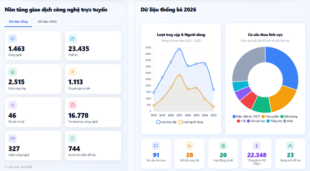 Dữ liệu thống kê năm 2026 cho thấy sự tăng trưởng mạnh mẽ của hệ sinh thái công nghệ và hoạt động kết nối cung – cầu trên toàn quốc