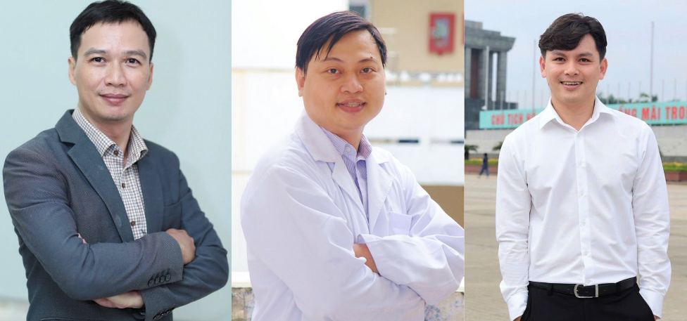 Nhóm tác giả, từ trái qua gồm: GS.TS Phan Bách Thắng - Hiệu trưởng Trường Đại học Khoa học Sức khỏe, ĐHQG-HCM; PGS.TS Đoàn Lê Hoàng Tân - Phó Viện trưởng Viện Công nghệ Vật liệu Tiên tiến ĐHQG-HCM và TS Mai Ngọc Xuân Đạt - nghiên cứu viên Viện công nghệ vật liệu Tiên tiến ĐHQG-HCM.