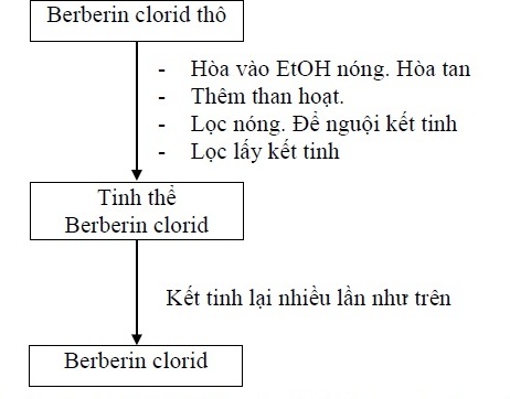 Berberin clorid được điều chế từ berberin clorid (hàm lượng > 90%) bằng cách kết tinh lại nhiều lần trong EtOH nóng với than hoạt. Sau khi thu được berberin clorid tinh khiết, tiến hành định tính, xác định cấu trúc và thẩm định.